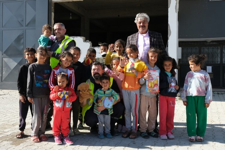 Hatay’da ayak basmadık yer bırakmayan Bursa Büyükşehir Belediyesi, bazen küçük bir toka, bazen pelüş bir oyuncakla mutlu olan çocuklarla oyunlar oynayarak depremin izlerini silmeye çalışıyor.
