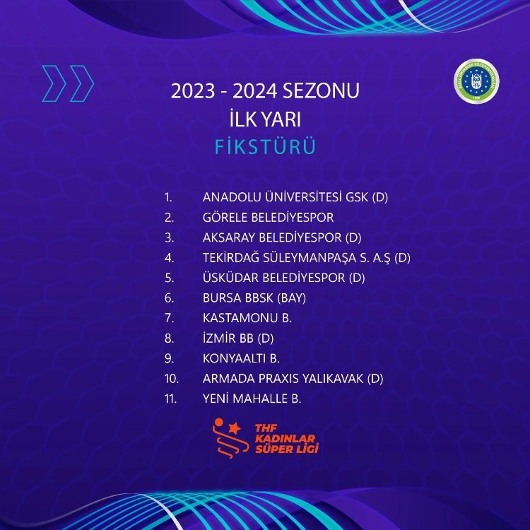 Ankara THF Spor Kompleksi'nde gerçekleşen 2023-2024 sezonu fikstür çekiminde Bursa Büyükşehir Belediyespor Kulübü bünyesindeki Kadınlar Hentbol Takımı Süper Lig'i deplasmanda açacak.