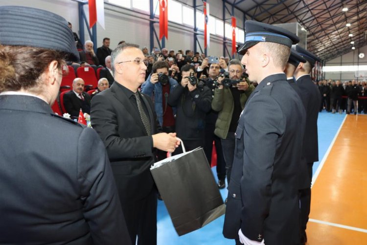 Daha sonra dereceye giren 3 öğrenciye hediyeleri verilirken, yeni mezun 203 polis adayı yemin etti.