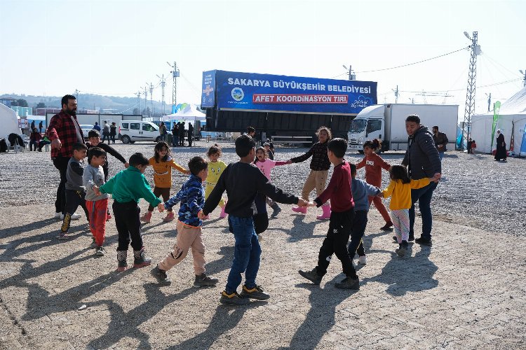 Sakarya Büyükşehir Belediyesi ekipleriasrın felaketinin yaşandığı deprem bölgesinde çadırkentlere kurduğu oyun alanlarında çocukların yüzünde tebessüm oldu.