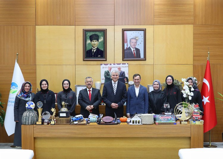 SAKARYA (İGFA)- Sakarya Büyükşehir Belediye Başkanı Ekrem Yüce, Şehit Yılmaz Ercan Kız Anadolu İmam Hatip Lisesi Fen ve Sosyal Proje Okulu’nun öğrencileri ve öğretmenleri makamında ağırladı.