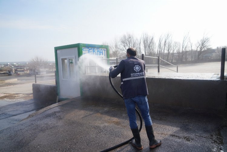 Diyarbakır Büyükşehir Belediyesi, şap olarak bilinen SAT-2 serotipi hastalığına karşı, Canlı Hayvan Borsası’nda dezenfekte çalışması yaptı.