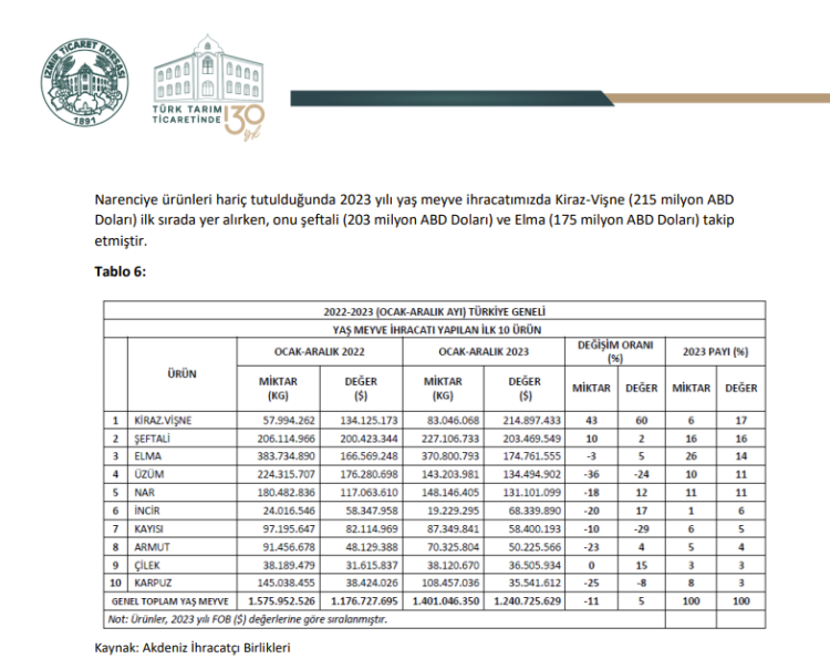 Geçtiğimiz yıl 227 bin 106 ton 733 kilogram olarak kaydedilen ve Türkiye’ye 203 milyon 469 bin 549 dolar katma değer sağlayan şeftali ihracatının, bu yıl 250 bin tona ulaşacağı ve Türkiye’ye 250 milyon dolar bandında bir katma değer sağlayacağı ön görülüyor.