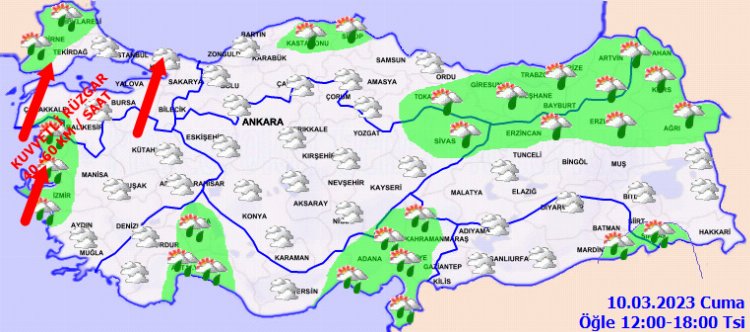 KUVVETLİ RÜZGÂR UYARISI: Rüzgârın, Marmara ve Kuzey Ege kıyılarında güneyli yönlerden kuvvetli (30-60 km/saat) esmesi beklendiğinden yaşanabilecek olumsuzluklara karşı dikkatli ve tedbirli olunması gerekmektedir.