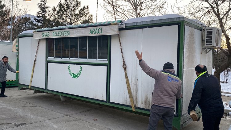SİVAS (İGFA) - Tüm imkânlarını afet bölgesi için seferber eden Başkan Hilmi Bilgin idaresindeki Sivas Belediyesi, şehirde taziye aracı olarak kullanılan konteyner araçların hızlı bir şekilde dönüşümünü yaparak geçtiğimiz günlerde Malatya’ya göndermişti. Bölgeye ulaşan araçlar, İnönü Üniversitesi kampüsü içerisine konuşlandırıldı.