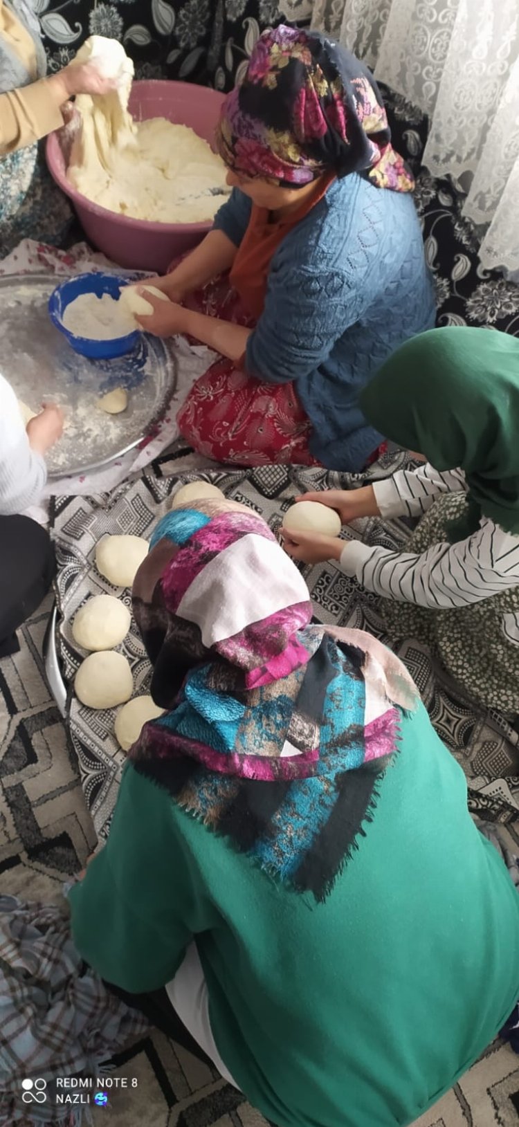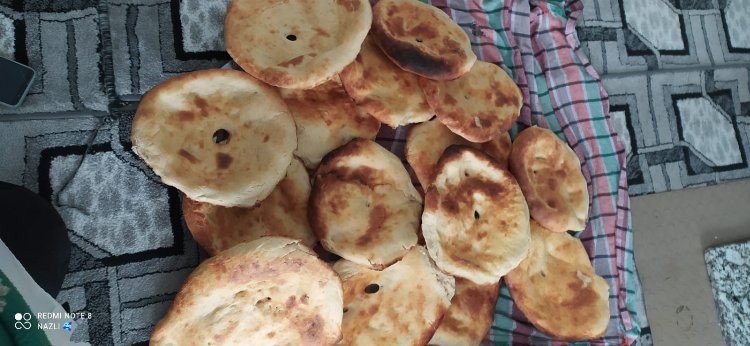 Hayırsever vatandaşların bize sağladığı un ile birlikte ev kadınlarımızda sabah saatlerinden itibaren hamur yoğurduğunu belirten Binkay,” Geriye kalan kadınlarımız da tandırı yakıp ekmek pişiriyor. Bir kısım ev hanımı da saç yufka ekmeği pişiriyor.