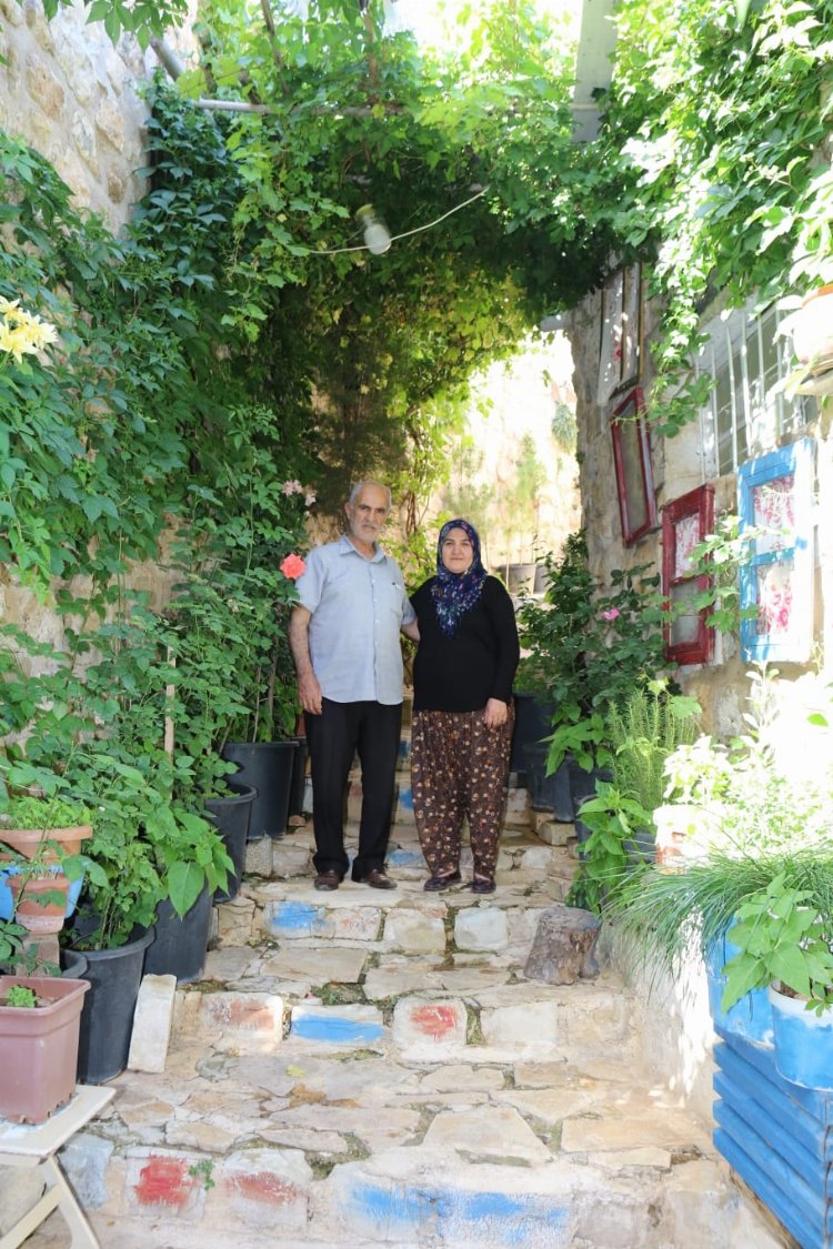 Mardin’de mahalle muhtarı ve eşi örnek davranışta bulunarak, tarihi sokağı cennet bahçesine dönüştürdü.