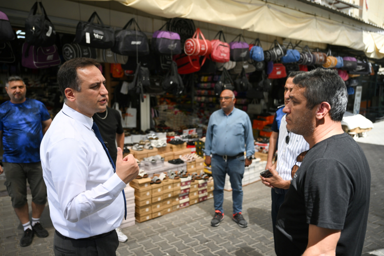 Özellikle pazaryerinin açık olduğu günlerde bölgede yaşanan yoğunluğa dikkat çeken Başkan Eşki, “Buradaki yoğunluk hem yayalar hem de araçlar açısından ciddi bir trafik ve güvenlik meselesi yaratabiliyor. Bu nedenle yol ve kaldırım kullanımına özen göstermemiz çok önemli. Esnafımızla el birliğiyle hareket ederek, daha düzenli ve güvenli bir alışveriş ortamı oluşturabiliriz” dedi.
