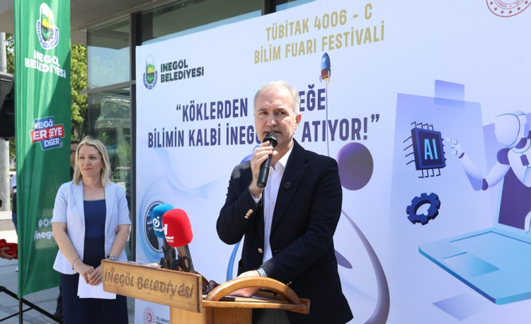 Bursa'da İnegöl Belediyesi ile İnegöl İlçe Milli Eğitim Müdürlüğü iş birliğinde bu yıl ilk kez düzenlenen TÜBİTAK 4006-C Bilim Fuarı Festivali, şehri bilim ve teknolojiyle buluşturdu.