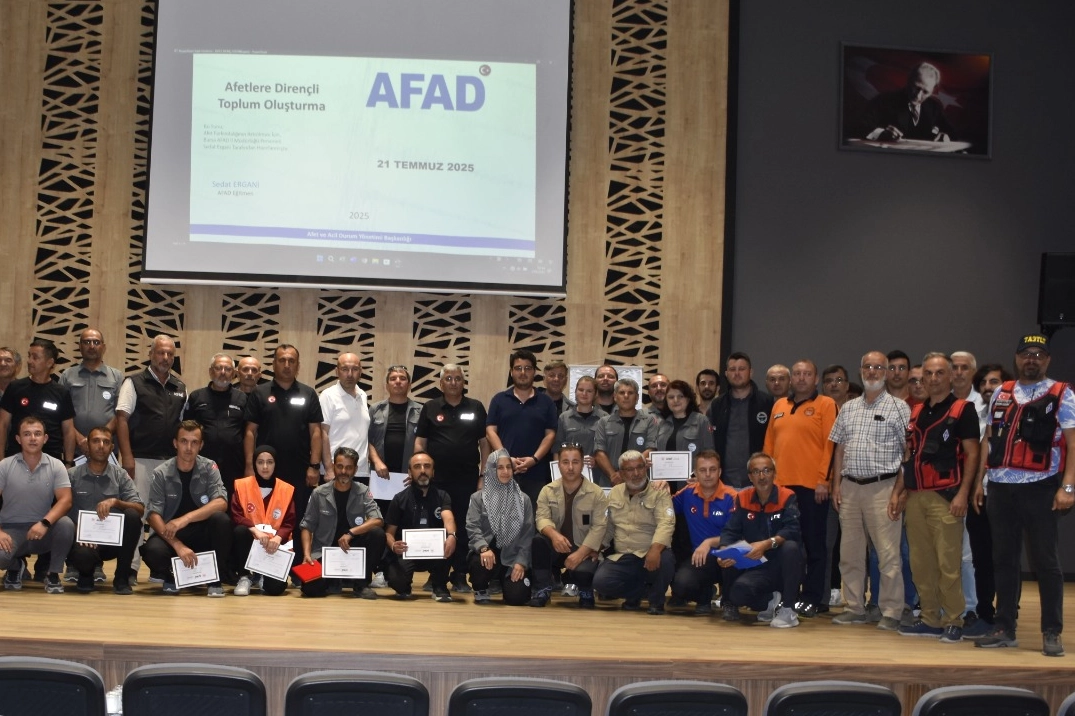 BURSA (İGFA) - Karacabey Belediyesi, Bursa İl Afet ve Acil Durum Müdürlüğü (AFAD) ve Karacabey Kum Tanesi Derneği Arama Kurtarma (KUMDAK) iş birliğiyle, Ergün Koç Kültür Merkezi’nde Afet Bilinçlendirme Eğitim Programı ve Sertifika Töreni düzenledi.
