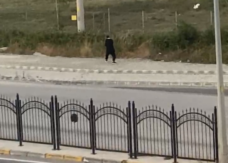 Yoldan geçen bir vatandaş, kaldırımda dakikalarca boks hareketleri yapan genci fark ederek cep telefonu kamerasıyla görüntüledi.