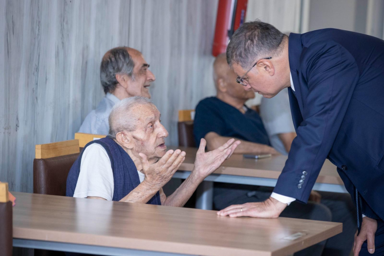 Başkan Dr. Cemil Tugay’a Başkan Vekili Dr. Zafer Levent Yıldır, İzmir Büyükşehir Belediyesi Genel Sekreter Yardımcısı Prof. Dr. Pınar Okyay, Sosyal Hizmetler Dairesi Başkanı Ela Hızlı, Huzurevi Şube Müdürü Cihangir Çetintaş eşlik etti. Başkan Tugay, huzurevi sakinleri ve personelle bir araya geldi.