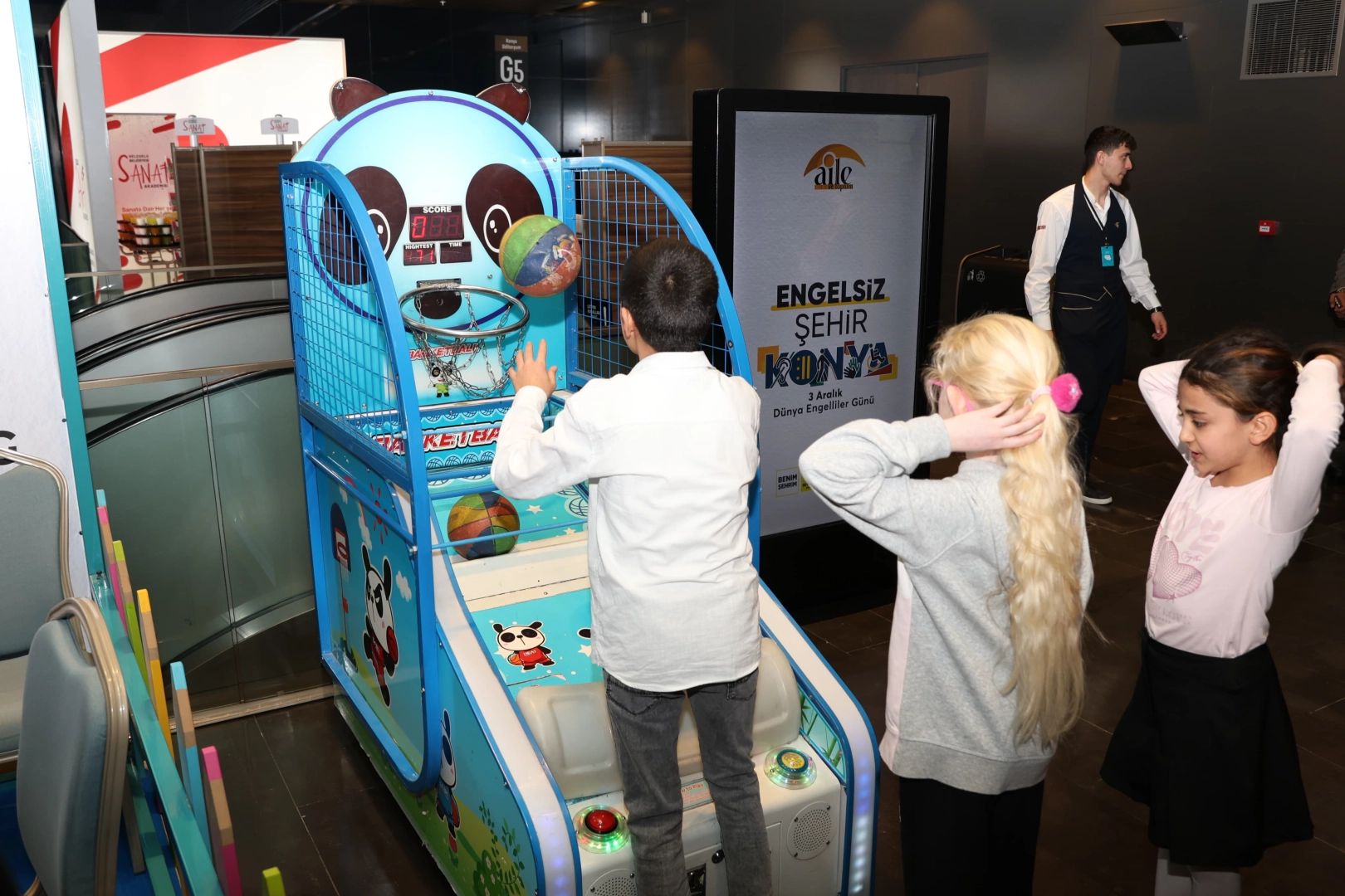 Program öncesinde Konya Büyükşehir Belediyesi tarafından fuaye alanına kurulan; karaoke etkinliği, basketbol oyunu, işaretin sesi oyunu, dokun tahmin et oyunu, dokunsal sayı eşleştirme gibi oyun alanlarında özel bireyler kendileri için hazırlanan akşamın keyfini çıkardı.