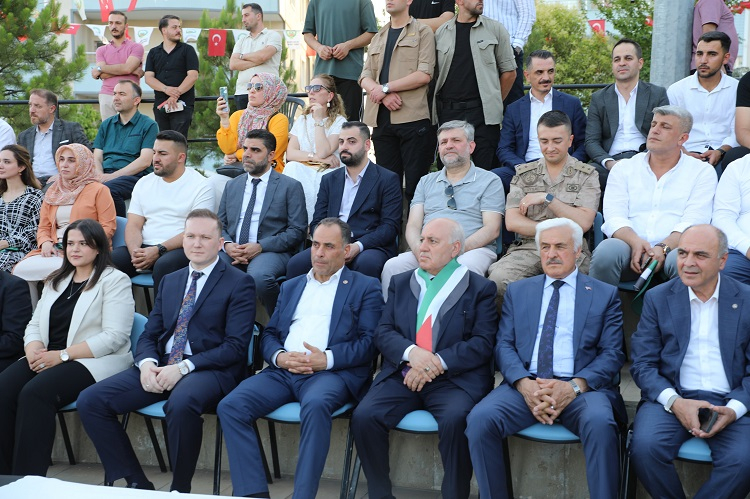 Saygı duruşu ve İstiklal Marşı'nın okunmasının ardından protokol üyeleri ve davetliler, Filistin ve Türk bayrakları eşliğinde kortej yürüyüşü gerçekleştirdi.