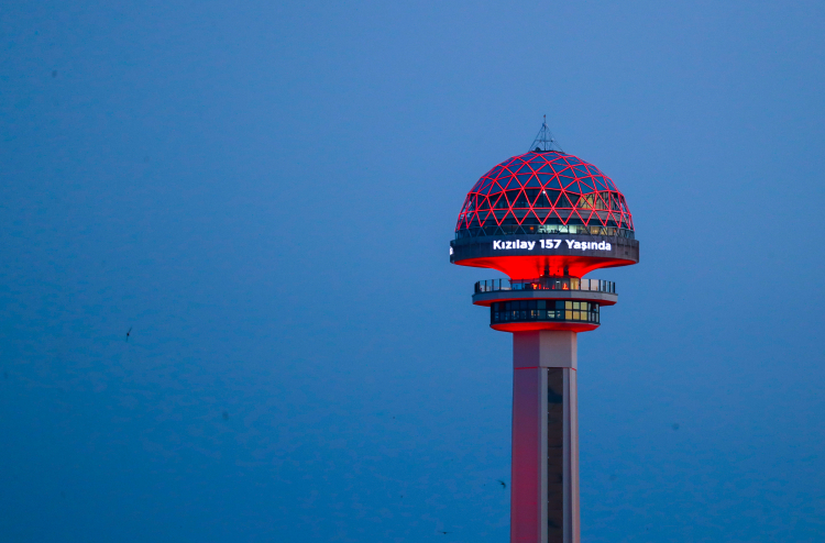 Başkent Ankara’nın simge yapılarından Atakule’de ise hem özel aydınlatma yapıldı hem de Kızılay’ın kuruluş yıldönümüne yönelik hazırlanan görseller kule ekranlarında paylaşıldı.